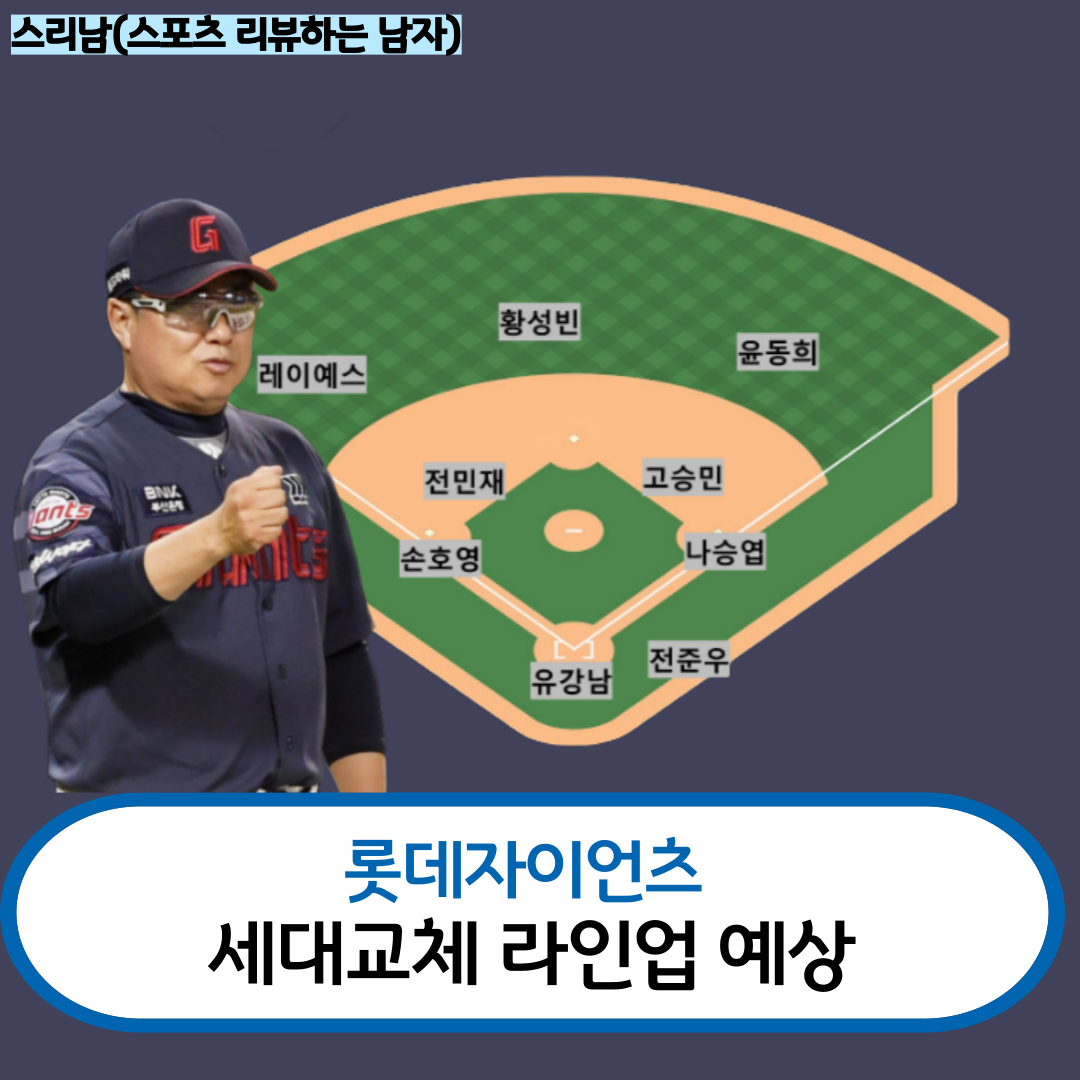 손호영은 지난해 타율 3할1푼8리, 18홈런, 101타점을 기록하며 팀 내 홈런 1위를 차지한 강타자입니다. 스타일상 4번 타자에 더 적합해 보이지만, 실제로 3번과 5번 타순에서 더 좋은 성적을 기록한 만큼 3번 타자로 나설 가능성이 큽니다.