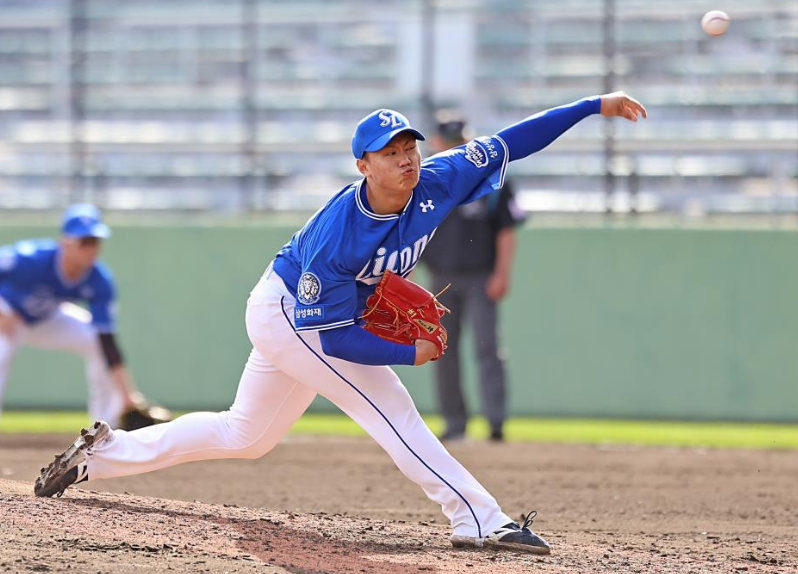 삼성의 배찬승은 최고 152㎞의 빠른 공과 대담한 피칭으로 주목받고 있습니다.